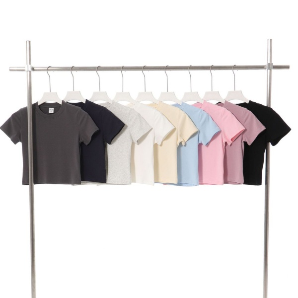 女装2025春夏美式辣妹短袖t恤修身t恤正肩短款上衣女氨纶纱T恤女