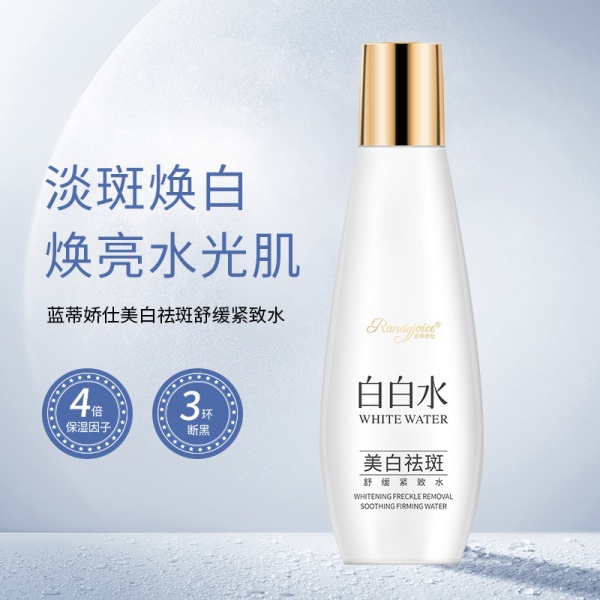 商品属性 [主要下游平台] 其他 [主要销售地区] 其他 [产地] 广东 [保质期] 3年 [化妆品功效] 美白,祛斑,紧致,舒缓肌肤 [品牌类型] 国货品牌 [定制] 是定制 [是否特征] 是国妆特征 [是否跨境出口专供货源] 是 [是否进口] 否 [有可授权的自有品牌] 否 [特妆产品名称] 蓝蒂娇仕美白祛斑舒缓紧致水 [特殊用途化妆品] 是 [特殊用途化妆品证号] 国妆特字20220118 [生产许可证号] 粤妆20240235 [适用人群] 女士 [适用肤质] 通用