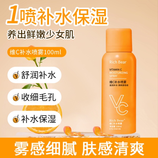 商品属性 [主要下游平台] ebay,亚马逊,wish,速卖通,独立站,LAZADA [主要销售地区] 非洲,欧洲,南美,东南亚,北美,东北亚,中东 [产品名称] Rich Bear维C补水喷雾 [产地] 广东 [保质期] 3年 [化妆品功效] 补水保湿,滋润 [品牌类型] 国货品牌 [是否跨境出口专供货源] 是 [是否进口] 否 [有可授权的自有品牌] 是 [特殊用途化妆品] 否 [生产许可证号] 粤妆20161057 [适用人群] 通用 [适用肤质] 通用 [非特化妆品备案证号] 粤G妆网备字2024070584