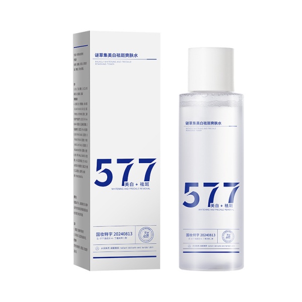 商品属性 [产地] 广州 [保质期] 3年 [化妆品功效] 美白,补水保湿 [品牌类型] 国货品牌 [是否跨境出口专供货源] 否 [是否进口] 否 [特妆产品名称] 谜草集美白祛斑爽肤水 [特殊用途化妆品] 是 [特殊用途化妆品证号] 国妆特字20240813 [适用人群] 女士,男士 [适用肤质] 中性,干性,混合性
