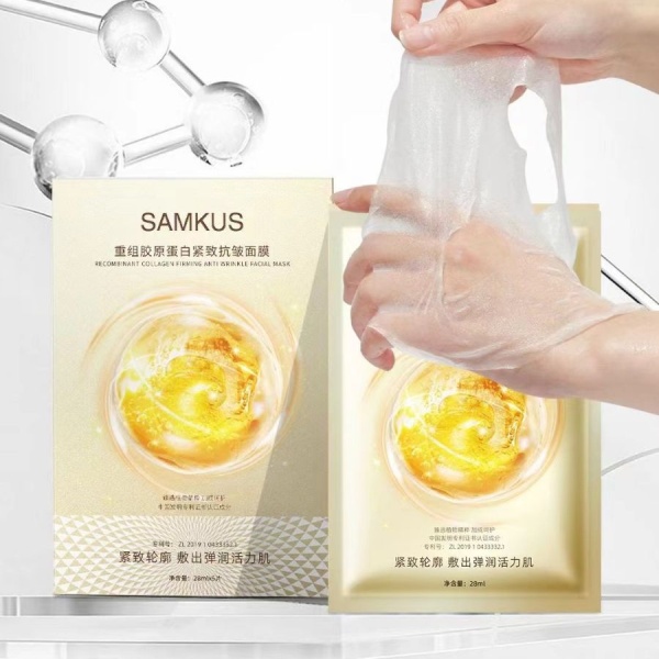 商品属性 [产品名称] 重组胶原蛋白紧致抗皱面膜 [产地] 广州 [保质期] 3年 [化妆品功效] 补水保湿,紧致 [品牌类型] 国货品牌 [是否跨境出口专供货源] 否 [是否进口] 否 [特殊用途化妆品] 否 [生产许可证号] 粤妆20160905 [适用人群] 女士 [适用肤质] 油性,干性,敏感性,混合性 [非特化妆品备案证号] 粤G妆网备字2023287386