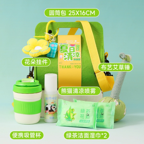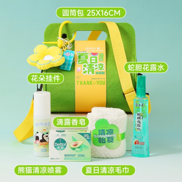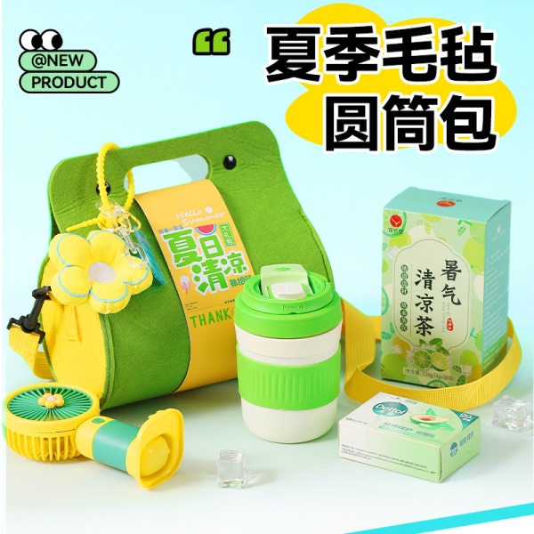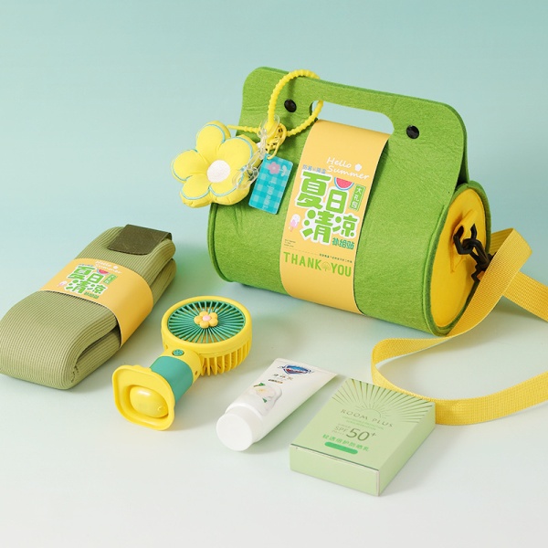 商品属性 [卖点] 福利夏季伴手礼套装 [是否IP授权] 否 [是否专利货源] 否 [是否属于礼品] 是,商务礼品 [有可授权的自有品牌] 否 [材质] 毛绒 [特色] 夏日清凉防暑礼包 [用途] 送客户高档礼品 [类别] 商务礼品套装 [送礼用途] 商务礼品,福利礼品 [适用节日] 通用 [适用送礼关系] 同事,朋友 [适用送礼场合] 派对聚会 [风格] 现代艺术