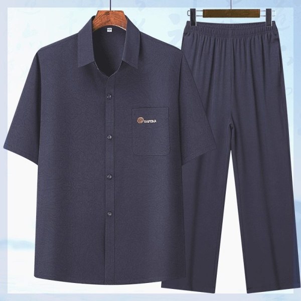 商品属性 [上市年份/季节] 2024年夏季 [上衣款式] 衬衫 [上衣袖长] 短袖 [主面料成分] 聚酯纤维(涤纶) [主面料成分的含量] 84.4% [厚薄] 加绒 [原创设计货源] 否 [库存类型] 整单 [是否跨境出口专供货源] 否 [是否连帽] 不连帽 [有无质检报告] 否 [淘货类别] 商务绅士(35岁以上) [裤长] 长裤 [误差范围] 1-3cm [货源类别] 现货 [适合季节] 夏季 [适用场景] 休闲 [面料名称] 聚酯纤维 [风格] 中国风
