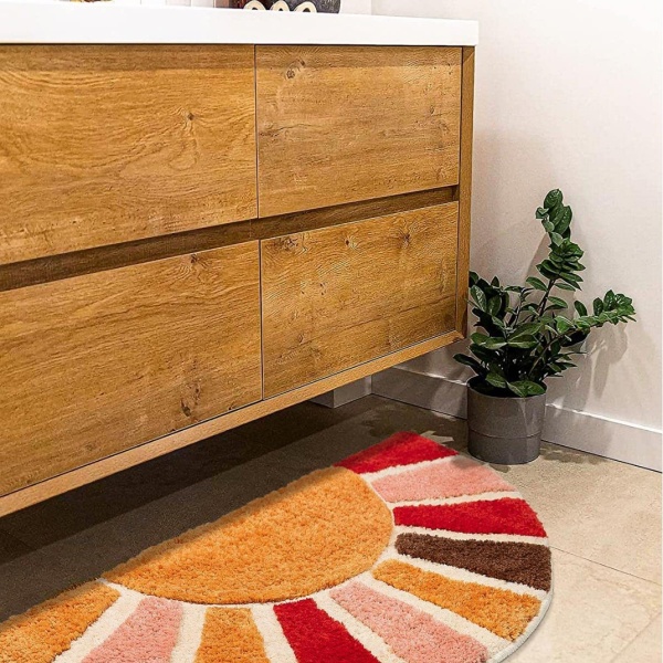 新款跨境浴室吸水防滑脚垫太阳花地垫家用植绒床边毯亚马逊地毯