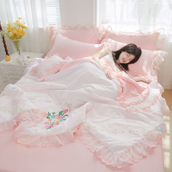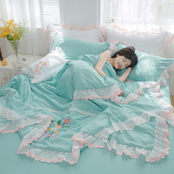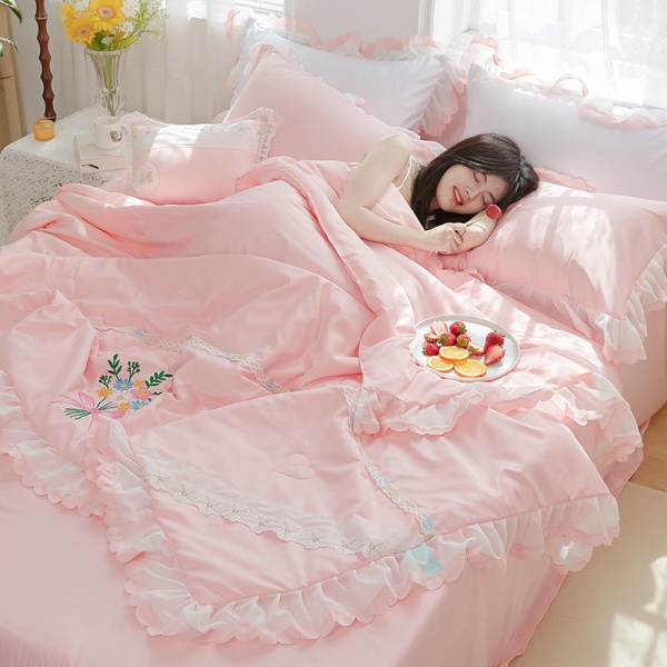 空调被夏凉被四件套冰丝夏季公主风可爱少女单双人真天水机洗透气