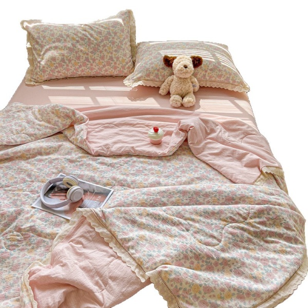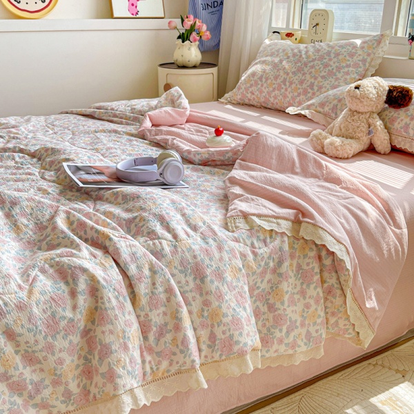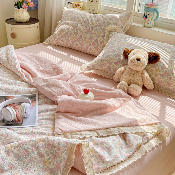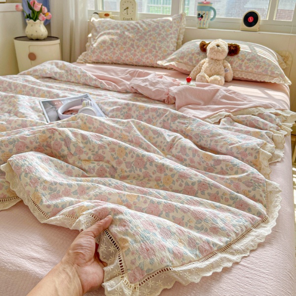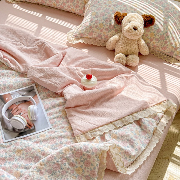 田园风碎花全棉空调夏凉被边四件套柔软水洗双人床单被套三件套