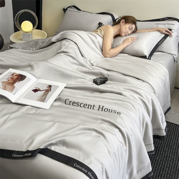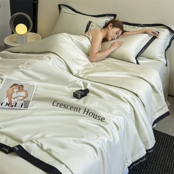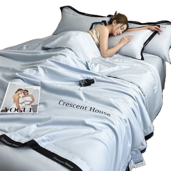 夏季水洗冰丝夏凉被床笠款四件套轻奢刺绣空调被可机洗被子三件套