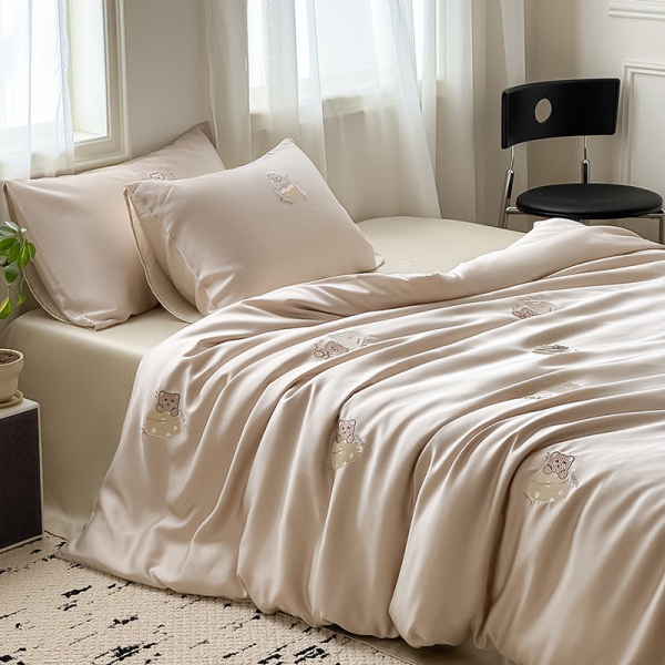 商品属性 [克重] 1000g(含)~1500g(不含) [加工定制] 是 [印染工艺] 活性印染 [图案] 卡通动漫 [是否一般纳税人] 是 [材质] 莱赛尔纤维 [款式] 床单式 [织造工艺] 绣花 [面料支数] 其他 [风格] 卡通