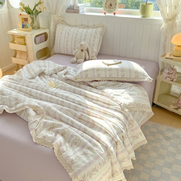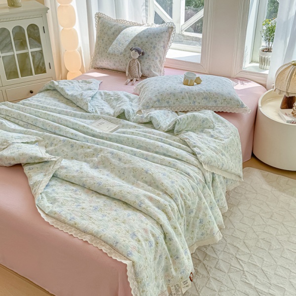 ins法式花边夏凉被四件套抖音爆款A类母婴级空调被床单床笠四件套