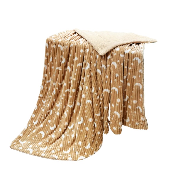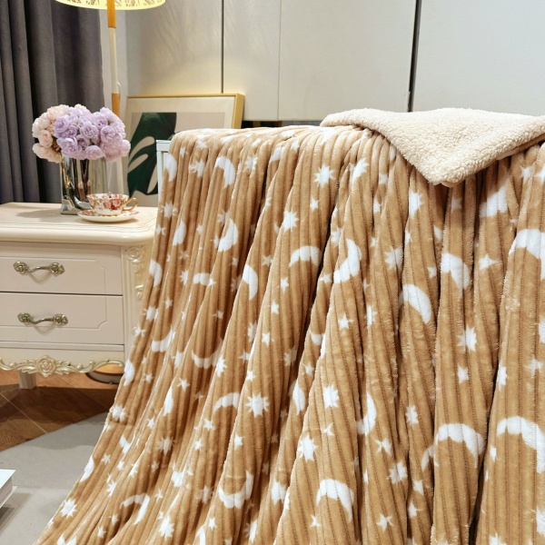 跨境新款星月抽条羊羔绒双层毛毯法兰绒毯子办公室午睡盖毯空调被
