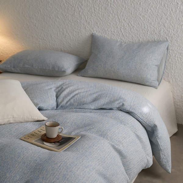 夏季全棉色织双层皱皱纱四件套纯棉被套床单床上用品床笠1.2m宿舍