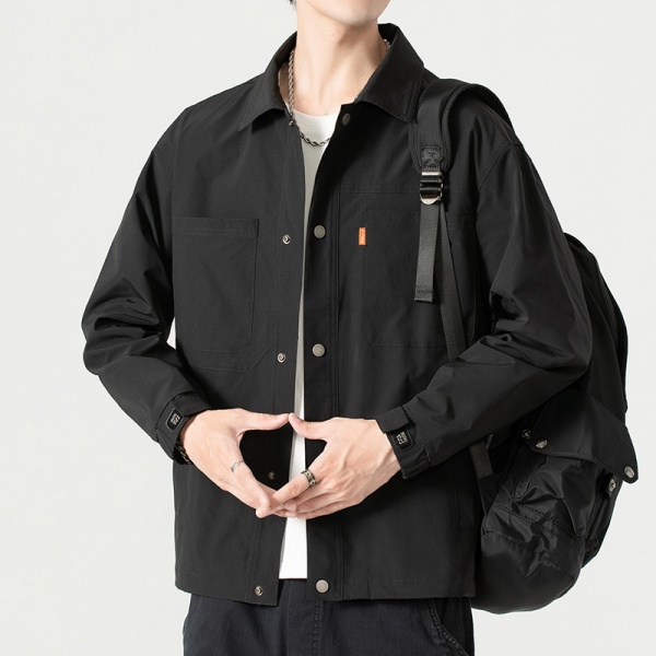 春秋加肥加大码男装休闲夹克外套胖子宽松翻领男式上衣时尚夹克