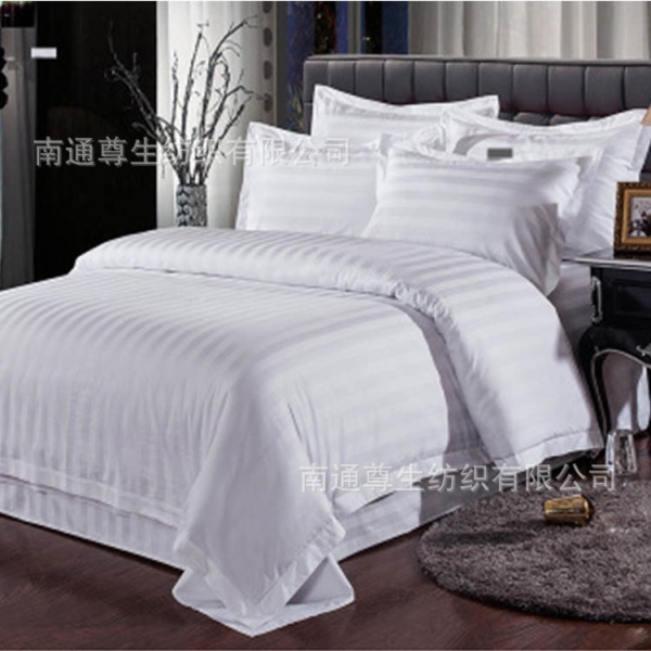 加密缎条床上四件套纯棉 酒店床上用品批发三件套酒店四件套直供