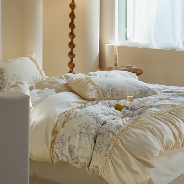 100S高支高密:面料支数密度高,光泽饱满高级轻奢,带来更舒适的睡眠体验。贡缎长绒棉面料:精选优质长绒棉,舒适透气,贡缎丝绸奢华质感,触感顺滑细腻。法式百褶边:手工打褶百褶花边,浪漫法式风情,妩媚不失个性,小细节体现高品质。面料:全棉,100高支高密长绒棉。工艺:百褶花边。