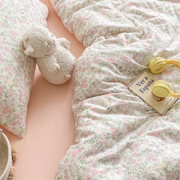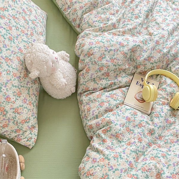 A类全棉双层纱四件套2025新款纯棉被套床单碎花床上用品四季通用