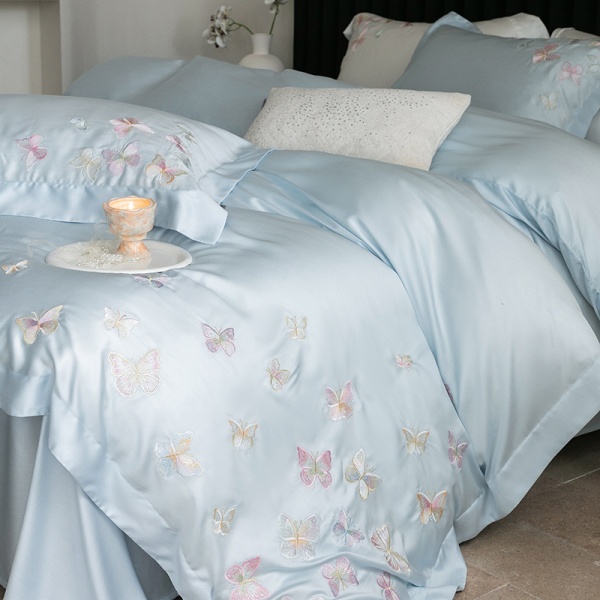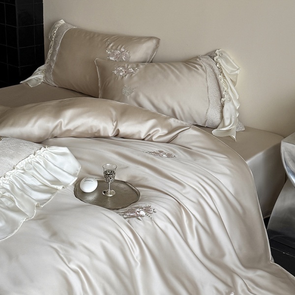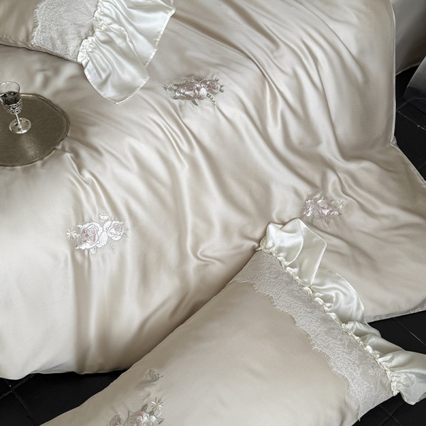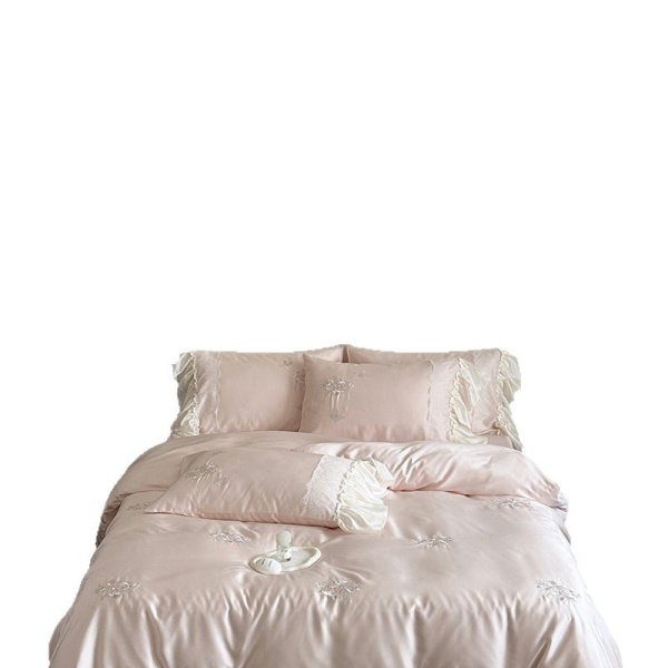 新款高端天丝四件套夏季浪漫粉色玫瑰花边冰凉感床笠被套床上用品