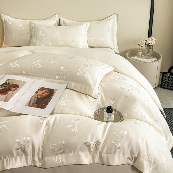 夏季提花水洗天丝四件套蝴蝶结冰丝裸睡丝滑被套高级感床品三件套