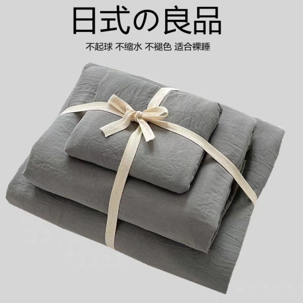 A类水洗棉可裸睡床上四件套纯色亚麻被套床单床笠学生宿舍三件套