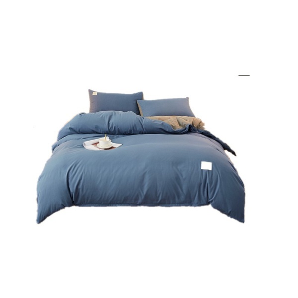 春夏季加厚磨毛纯棉纯色床笠款四件套日式无印格子条纹全棉三件套