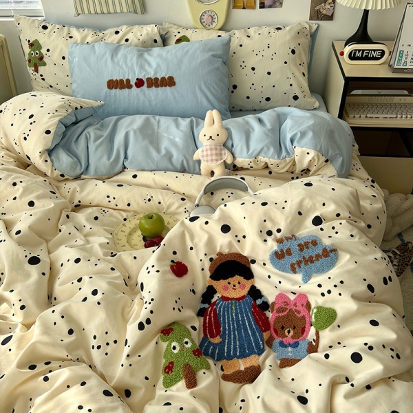 商品属性 [克重] 2500g(含)-3000g(不含) [加工定制] 是 [印染工艺] 半活性印染 [图案] 卡通动漫 [是否一般纳税人] 是 [材质] 纯棉 [款式] 床单式 [织造工艺] 绣花 [面料密度] 133x72 [面料支数] 40支 [风格] 卡通