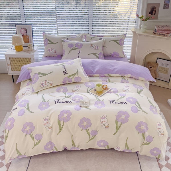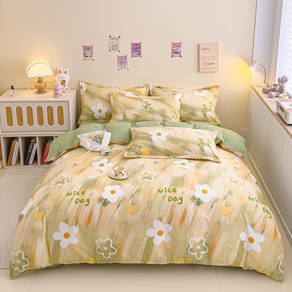 ins风纯棉四件套加厚磨毛小清新全棉床单被套床笠款宿舍三件套