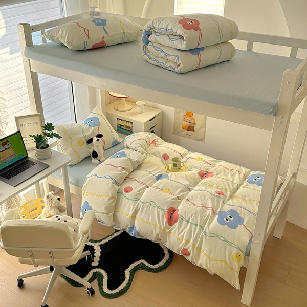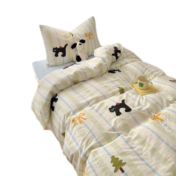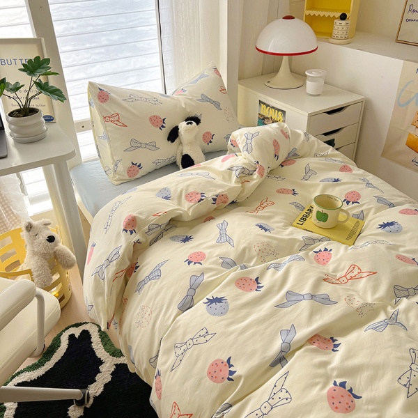 A类水洗棉印花四件套ins风学生宿舍小清新三件套床单床笠款单被套