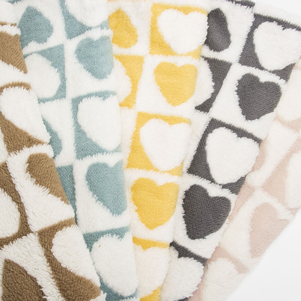 工厂现货爱心提花舒棉绒阳离子色织服装家纺家居宠物用品箱包鞋帽