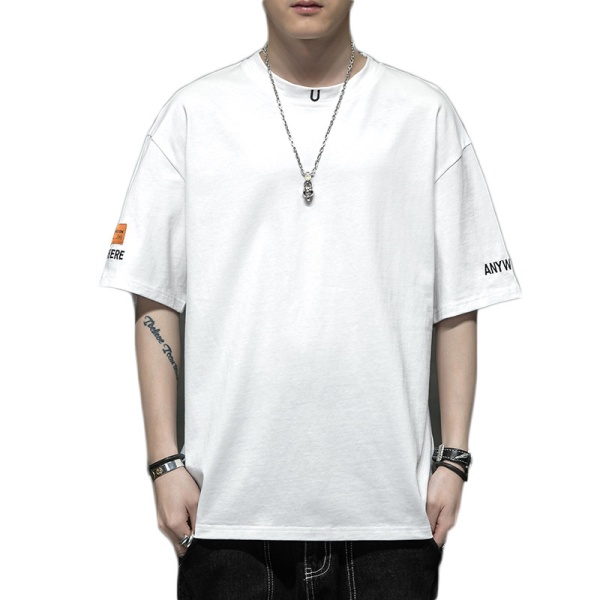 商品属性 [上市年份/季节] 2025夏季 [主要下游平台] 速卖通 [主要销售地区] 欧洲 [主面料成分] 棉 [主面料成分的含量] 100% [克重] 160g [印花主题] 文字思想 [厚薄] 普通 [原创设计货源] 是 [图案] 字母 [工艺] 刺绣/绣花 [库存类型] 整单 [是否库存] 是 [是否跨境出口专供货源] 是 [有可授权的自有品牌] 是 [有无质检报告] 否 [材质功能] 其他 [款式] 套头 [款式细节] 贴布装饰 [淘货类别] 青春流行(18-24岁) [版型] 宽松型 [类别] T恤 [袖型] 落肩袖 [袖长] 五分袖/中袖 [误差范围] 1-3CM [货源类别] 现货 [适合人群] 青少年 [适合季节] 夏季 [适用场景] 休闲 [面料名称] 棉 [领口形状] 圆领 [领型] 无领 [风格] 韩版
