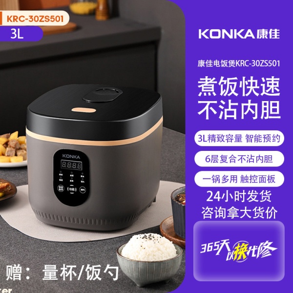 康佳新款电饭煲3L大功率家用迷你蒸煮煲不粘锅多功能电饭锅集采
