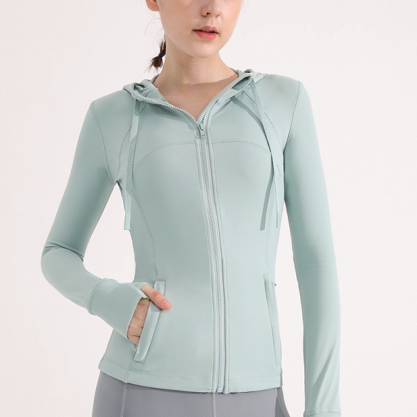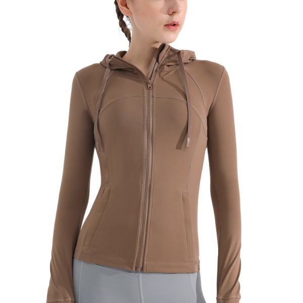 运动外套女上衣莱卡紧身高弹拉链跑步健身服透气连帽修身训练卫衣