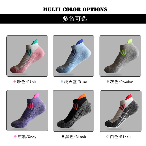 厂家批发运动袜女毛巾底短袜防摩擦拼色系网眼透气跑步袜户外袜子