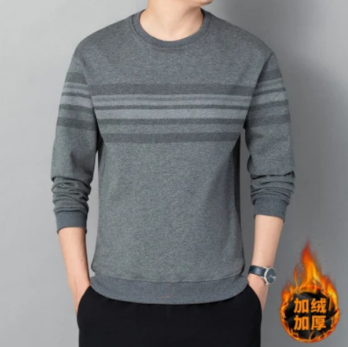 加绒卫衣男士2023新款宽松百搭潮流秋冬季男装上衣圆领爸爸装卫衣