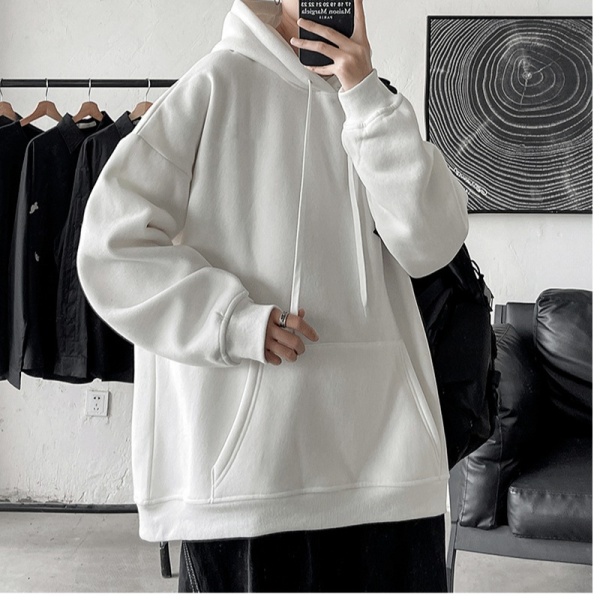 男士卫衣 连帽秋季宽松上衣男款情侣运动服纯色帽衫冬季加绒休闲