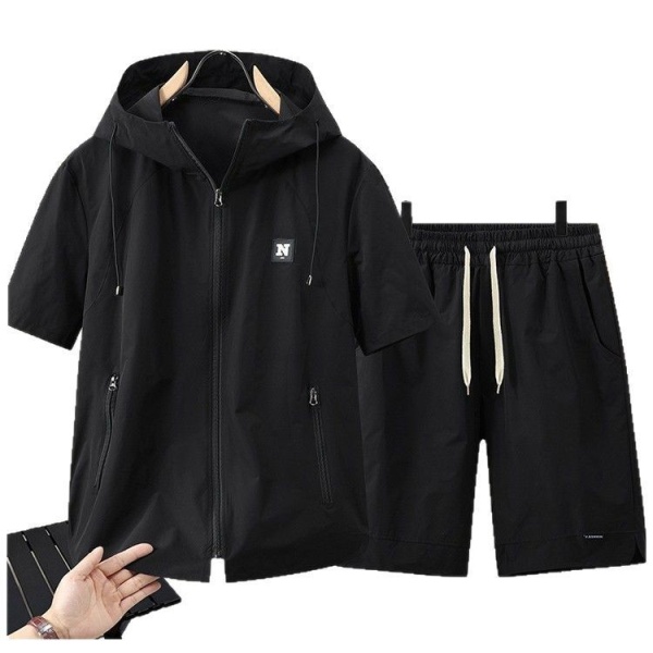 商品属性 [上市年份/季节] 2025夏季 [上衣款式] 外套 [上衣袖长] 短袖 [主面料成分] 聚酯纤维(涤纶) [主面料成分的含量] 100 [厚薄] 普通 [原创设计货源] 否 [库存类型] 整单 [是否跨境出口专供货源] 是 [是否连帽] 连帽 [有无质检报告] 否 [淘货类别] 时尚都市(24-35岁) [裤长] 短裤 [货源类别] 现货 [适合季节] 夏季 [适用场景] 日常 [面料名称] 涤纶 [风格] 韩版
