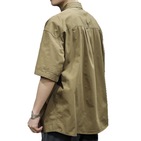 男潮牌衬衣夏季休闲工装衬衫男士宽松大码夏天运动休闲t恤短袖