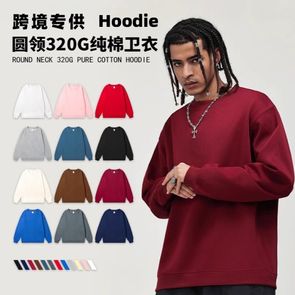 跨境 欧美重磅宽松纯色男式圆领混棉双面卫衣女韩版休闲长袖情侣