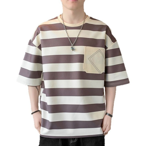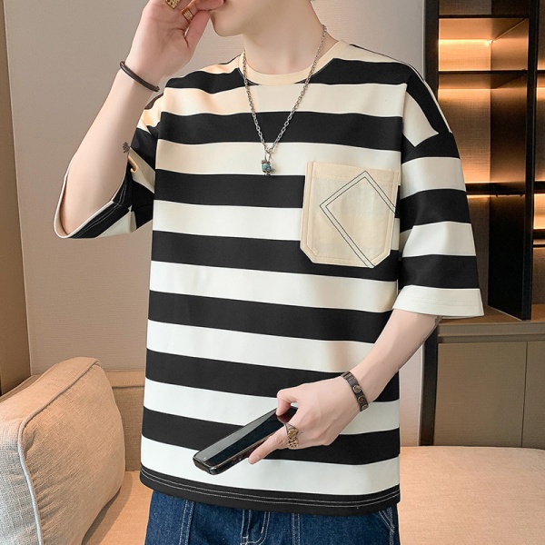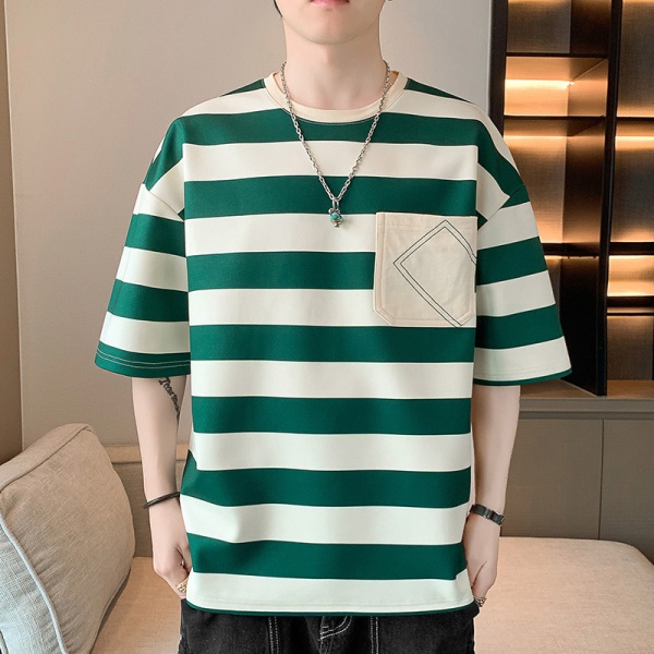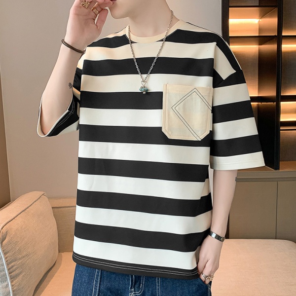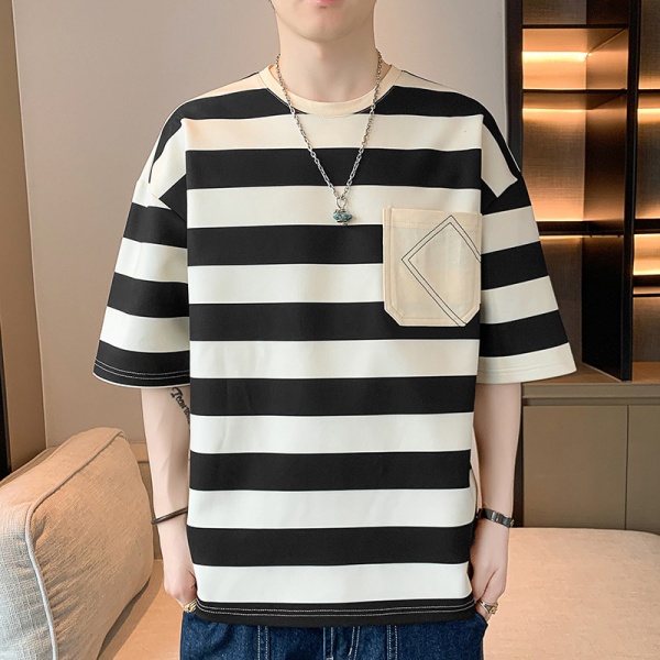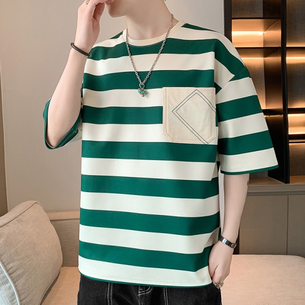 夏季新款男士短袖T恤男港风潮牌宽松圆领五分袖isn百搭半袖上衣潮