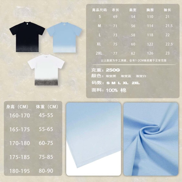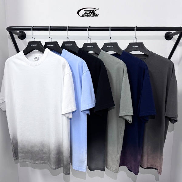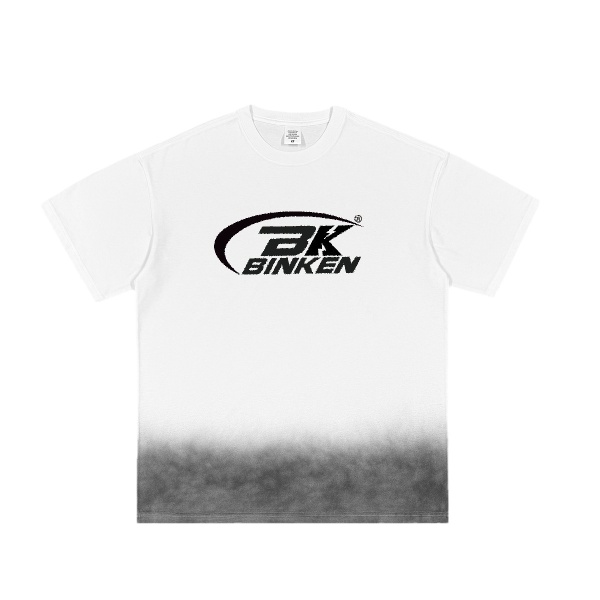 BK男装纯棉250G渐变喷色短袖男青少年美式高街洗水做旧宽松型t恤