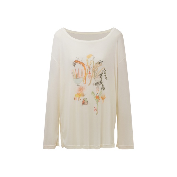 商品属性 [上市年份/季节] 2025夏季 [主面料成分] 天丝(莱赛尔纤维) [主面料成分含量] 95%及以上 [图案] 其他 [工艺] 印花 [是否跨境货源] 否 [款式] 套头 [流行元素] 褶皱 [版型] 常规 [衣长] 普通款(50cm<衣长≤65cm) [袖型] 常规袖 [袖长] 长袖 [面料名称] 天丝 [领型] 圆领 [风格] 休闲风 [风格类型] 日韩休闲