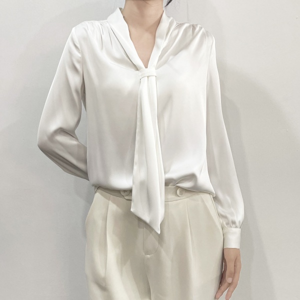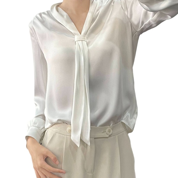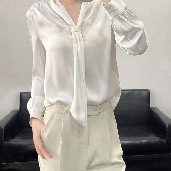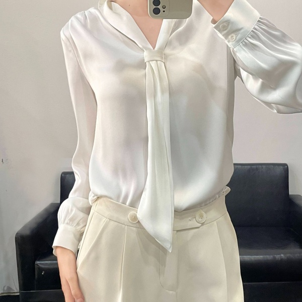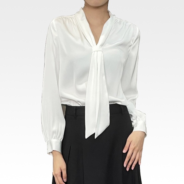 商品属性 [上市年份/季节] 2023年夏季 [主面料成分] 聚酯纤维 [主面料成分含量] 95%及以上 [是否跨境货源] 否 [款式] 开衫 [流行元素] 飘带 [版型] 宽松型 [衣长] 中长款(65cm<衣长≤80cm) [袖型] 常规袖 [袖长] 长袖 [门襟] 套头 [面料名称] 涤纶 [领型] 荡领 [风格] 通勤风 [风格类型] 气质通勤
