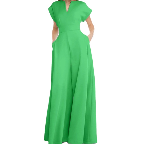 2025亚马逊欧美外贸女装宽松时尚优雅短袖v领纯色阔腿欧美连体裤