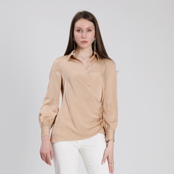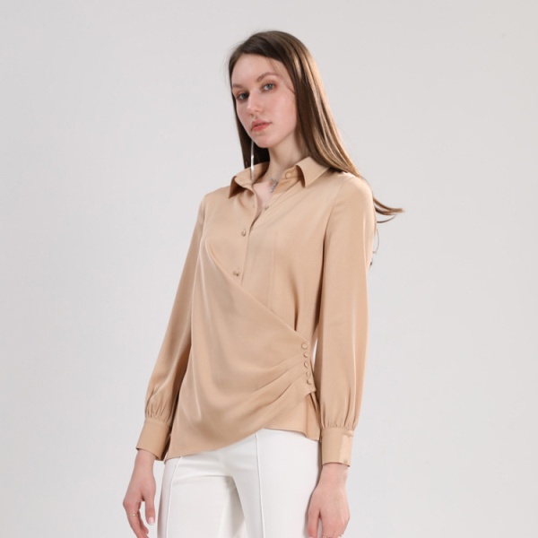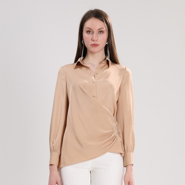 2023新款定制女装设计感醋酸时尚设计长袖套头女式衬衫
