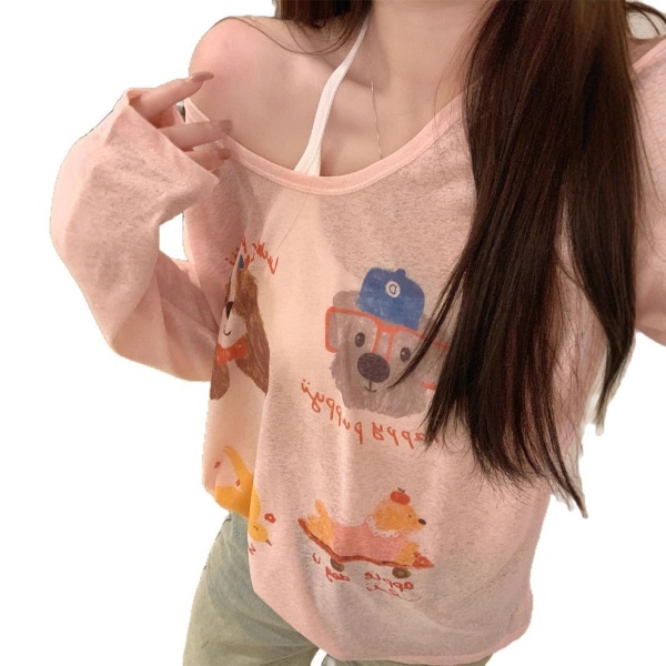 商品属性 [上市年份/季节] 2025夏季 [主面料成分] 涤纶(聚酯纤维) [主面料成分2] 涤纶(聚酯纤维) [主面料成分含量] 95%及以上 [图案] 动物图案 [工艺] 印花 [是否跨境货源] 否 [款式] 套头 [流行元素] 印花 [版型] 宽松型 [衣长] 普通款(50cm<衣长≤65cm) [袖型] 常规袖 [袖长] 长袖 [面料名称] 竹节布 [领型] 圆领 [风格] 甜美风 [风格类型] 清新甜美