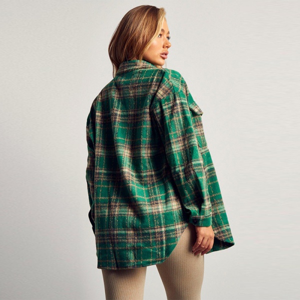 商品属性 [上市年份/季节] 2024年秋季 [主要下游销售地区1] 欧美 [主要下游销售地区2] 其他 [主面料成分] 涤纶(聚酯纤维) [主面料成分含量] 95%及以上 [图案] 格纹 [工艺] 手工磨破 [是否跨境货源] 是 [款式] 开衫 [流行元素] 口袋 [版型] 常规 [衣长] 中长款(65cm<衣长≤80cm) [袖型] 衬衫袖 [袖长] 长袖 [跨境风格类型] 舒适休闲 [门襟] 单排多扣 [面料名称] 毛呢 [领型] POLO领 [风格] 休闲风 [风格类型] 日韩休闲