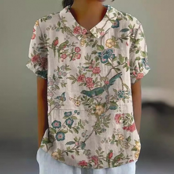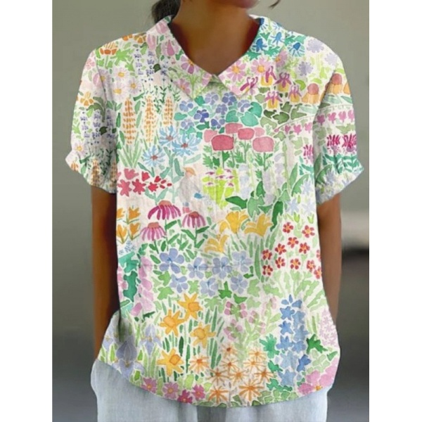 跨境外贸2024夏季女装新款亚马逊宽松印花圆领休闲大码套头女装T